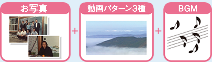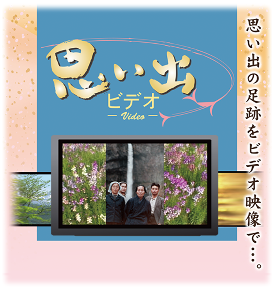 故人様との思い出のお写真をお借りして、美しい風景・BGM・ナレーションと組み合わせたビデオに仕上げます。