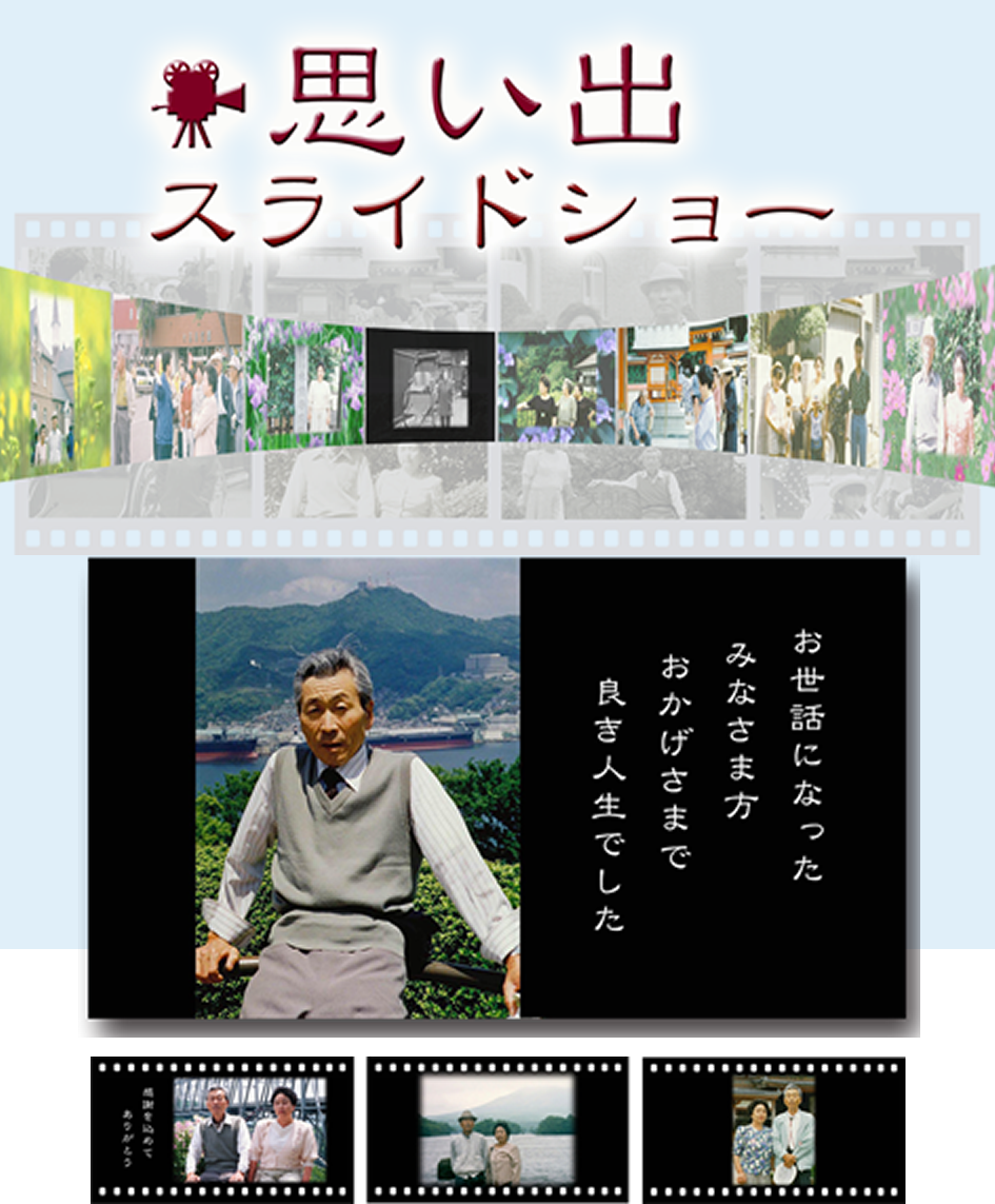 思い出ビデオの中の故人様は、ご遺族・ご参列者様のお心の中に永遠に刻まれることでしょう。